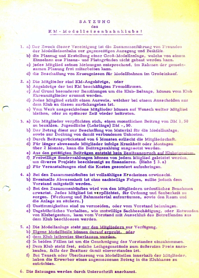 Zum Erstaunen einiger Clubmitglieder hat man sich vor 50 Jahren sogar eine Satzung gegeben: