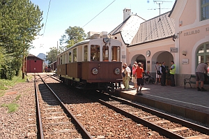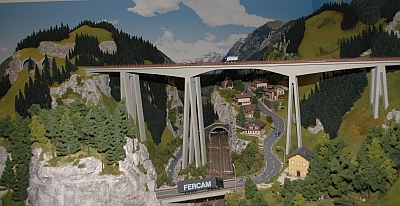 Nachwuchsarbeit Mit kleinstem Personalstand, Geschäftsführerin, Techniker und Kassenaufsicht wird die Ausstellung für das Publikum bereitgehalten, in der ein Teil der umfangreichen Sammlung zu sehen ist. Mehr noch: den Nachwuchs für das Hobby „Modellbahn“ zu begeistern ist eine der großen Aufgaben, die sich die Mitarbeiter der Ausstellung gestellt haben. „Lasst die Buben und Mädchen mit der Bahn spielen, etwas Kreatives beitragen, etwas ausprobieren“ so das Credo von Techniker Christian Schöpf der die Ausstellung betreut, wartet und Herr aller Züge ist. So sind auf der Anlage Mittelgebirge absichtlich einzelne Teile noch nicht montiert, um den interessierten Kindern die Möglichkeit zu geben, etwas für die Ausstellung beizusteuern, einen Fahrdraht zu montieren, eine Lok einzusetzen oder eine Rangierfahrt zu steuern. Die Erfahrung zeigt, dass auch die von Computerspielen oder Fernsehen beeinflussten Kids auch für ein kreatives Hobby begeisterungsfähig sind. Drei Etagen Modellbahn Im Erdgeschoss empfängt den Besucher eine Anlage mit dem Namen „Mittelgebirge“. In einer Phantasielandschaft vom Tal bis ins Gebirge sind viele Möglichkeiten des Modellbauers realisiert und stimmen den Betrachter auf das Thema Eisenbahn ein. Verschiedenste Zuggarnituren aus den unterschiedlichsten Ländern vieler Epochen bewegen sich auf vier voneinander unabhängigen Ebenen, um den Betrieb in möglichst allen Bereichen der Eisenbahnwelt zu zeigen. So stehen im BW Hintertupfing alle möglichen Lokomotiven, um die Vielfalt der im Lauf der Zeit eingesetzten Technik in Deutschland und den Nachbarländern darzustellen. Auf der 35 qm großen HO Anlage bewegen sich 30 Züge vom ICE bis zum lokalen Güterzug. Etwa 500 Figuren ergänzen das Geschehen. Jede Ebene hat ihren eigenen Schattenbahnhof. An einem Ende der Modellbahnlandschaft sind die Kehrschleifen der vier Ebenen in offener Rahmenbauweise verwirklicht, die verschiedenen Zuggarnituren fahren gewollt langsam nur wenige cm vor dem Betrachter vorbei, um so dem Besucher auch kleinste Details zu zeigen. Durch die digitale Steuerung und einige Zufallsparameter kommt beim Zuschauer nie der Gedanke auf, „Diese Kombination habe ich doch schon einmal gesehen“. Der Vinschgau im Modell
