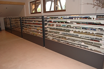 getrennt sind Modelle vieler Züge und Lokomotiven zu sehen. Besonderes
